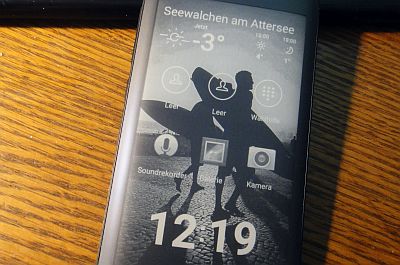in voller Sonne prima lesbar. Das AMOLED Display kann auf das ePaper Display gelegt werden.