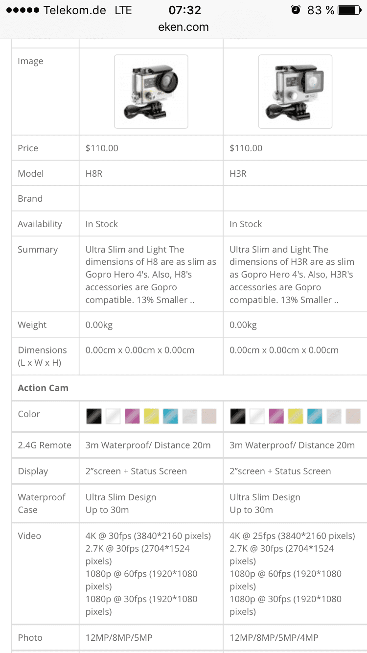 Sollte die EKEN H8 mit Sunplus 6350 die Antishake Funktion auch bekommen, so würde ich wegen des farbigen Front LCD dann eher zu dieser tendieren. Auch wenn sie dafür den IMX078 mit 12 MP nutzt, der etwas lichtschwächer ist.
