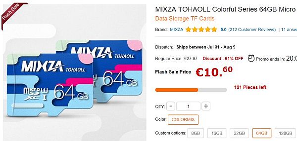 Bei GEARBEST gibt es ähnliche Karten mit 80MBs/37MBs um € 10.60 (64GB)