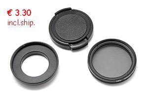 Auch grössere Filter passen - step-up Ring und die Sache ist geritzt, beugt zudem Vignettierungen vor.