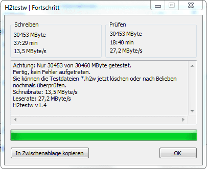 Gut, dass Du die Karte erwähnst. Ist es eine No Name Karte? Wenn ja, kannst Du sie mal testen. Sollte die Schreibgeschwindigkeit zu schlecht sein, dann kommt da auch nicht Gescheites bei raus. Die Karte ist schon sehr wichtig.