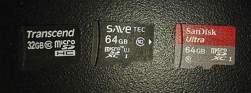 angefangen mit der langsameren Transcend, gefolgt von der Savetec, und im Anschluss zum Vergleich nochmal die Sandisk die ich vorher genommen hatte.