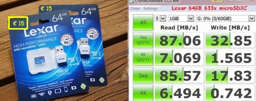 Ich habe die Lexar bzw. Transcend SD´s auch schon mal ins Auge gefasst. Aber wenn ich mich nicht irre sind die Teurer als die von SanDisk (amazon.de), zumindest bei meiner jetzigen Suche ist das der Fall. Darf ich fragen wo du die Lexar 633x 64gb um 15€ gekauft hast? Das günstigste Angebot was ich bisher gefunden habe waren 22€ OHNE VERSAND und in der SD-Adapter Version...