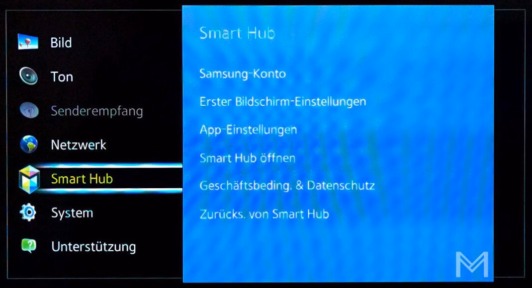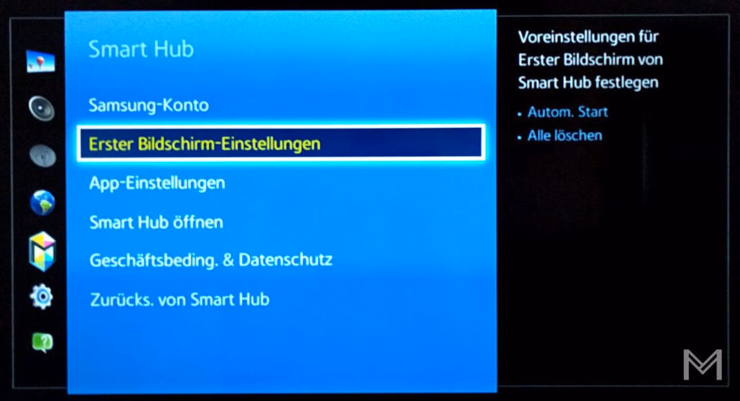 Nun kommt der wichtige Teil: Der automatische Start des Smart Hub muss deaktiviert werden! Diese Einstellung müsst Ihr im Menü des Fernsehers vornehmen. Nachstehend findet Ihr eine bebilderte Anleitung anhand des Samsung UE48H5570SS. Das Menü sollte sich bei den TVs ja ähneln.