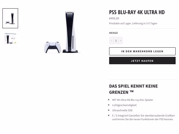 Unter den nur 16 Produkten, die in dem Euronics Fake-Shop gelistet sind, befinden sich auch die Sony Playstation 5 Disc Edition und die Digital Edition. Beide sind angeblich vorrätig und können sofort zum regulären Preis gekauft werden. Doch tut dies bitte nicht! Ihr werdet niemals die bestellte Ware erhalten. Weder die Playstation 5 Modelle, noch die Nintendo Switch. Es handelt sich um eine Abzocke!